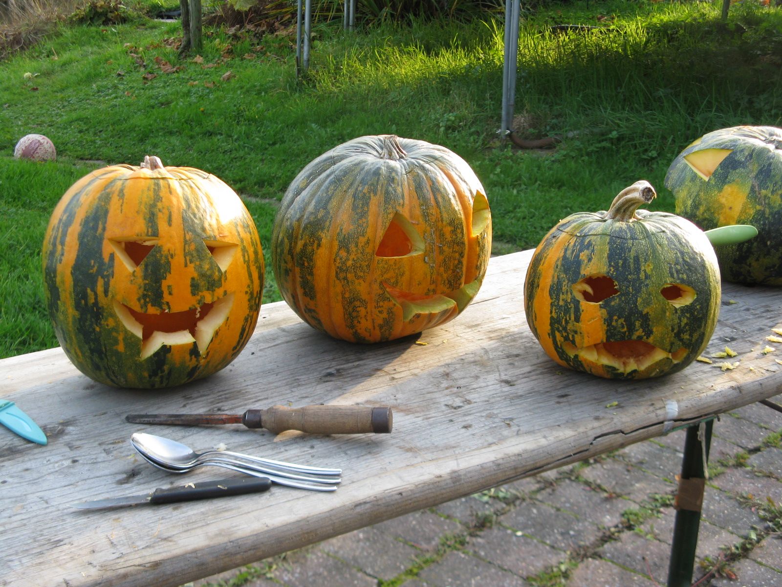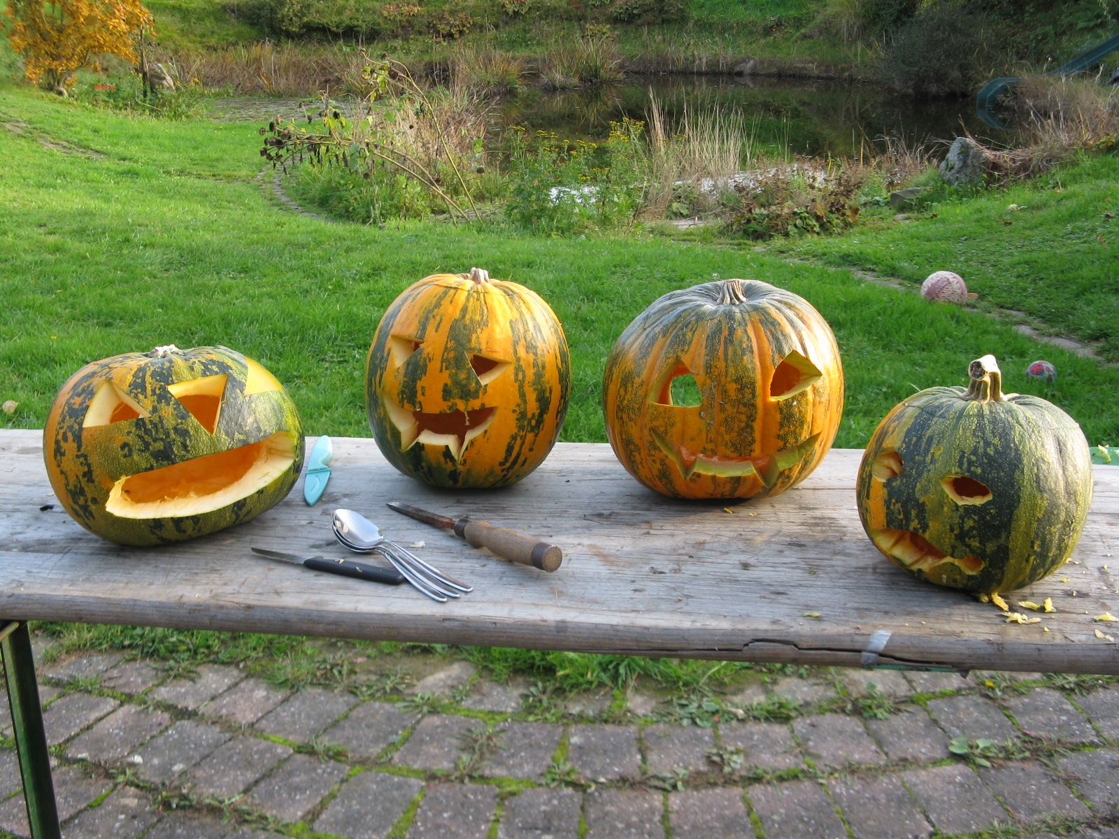 Während unserer Kochaktion hatten die Kinder viel Spaß beim Kürbisse schnitzen, im Garten zusammen mit den Vätern. Und natürlich durften sie ihre Kürbisse auch mit nach Hause nehmen.