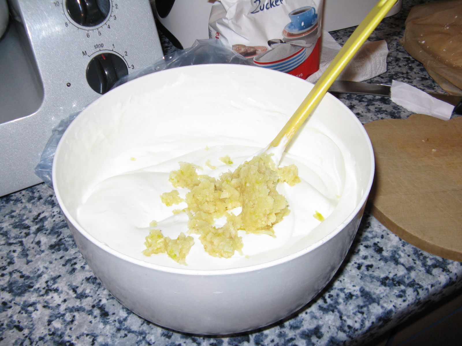 Für dieses Tsatsiki haben wir eine Riesenmenge Knoblauch verarbeitet. Es war aber wirklich lecker! Vampire sind in dieser Nacht ganz sicher nicht gekommen.