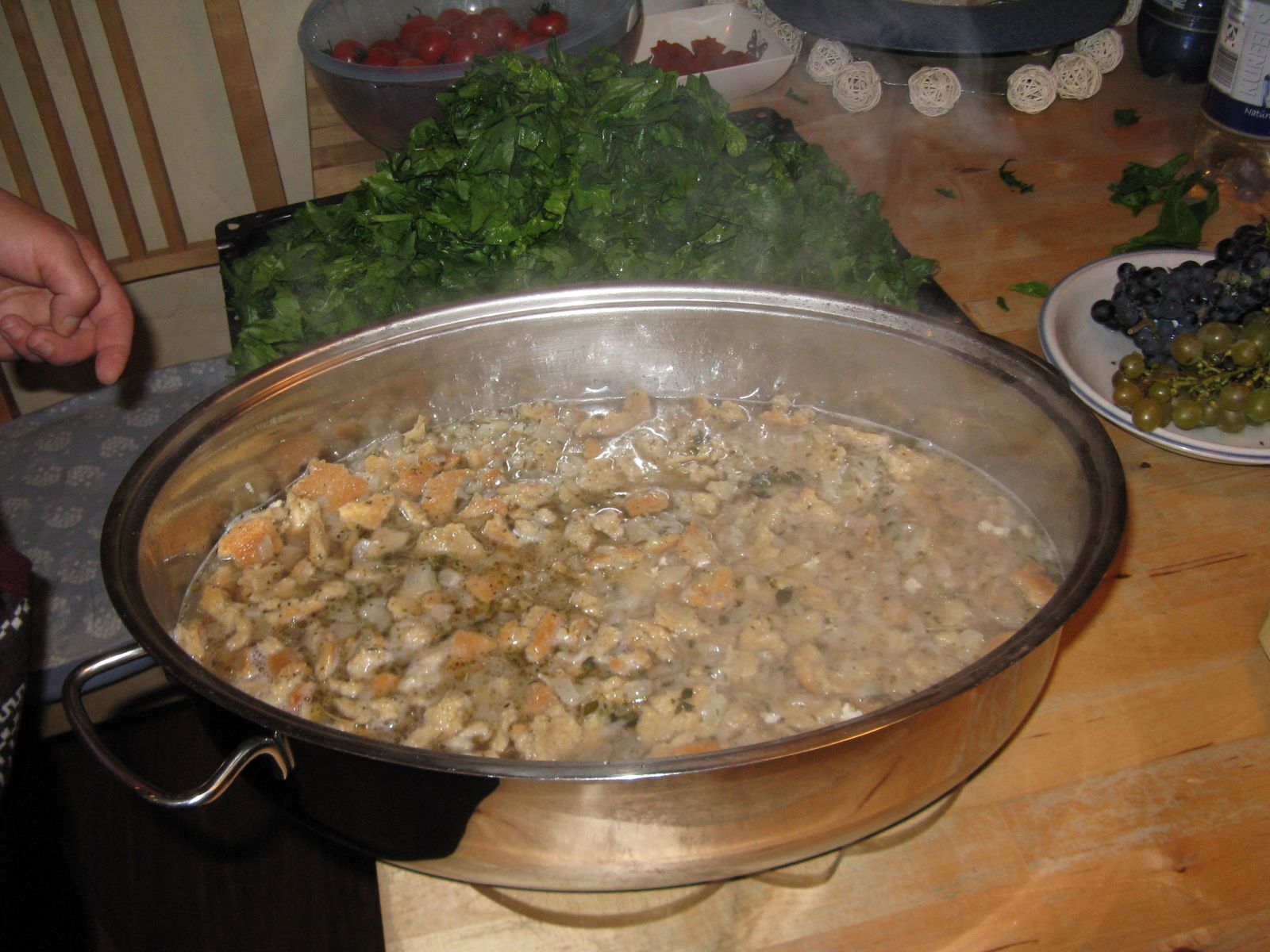 Alles in allem war all unser Kücheninventar im Einsatz, zudem wurden weitere Bräter und Töpfe von Keller herangeschafft… So viele aufwändige Gerichte zeitgleich, das hatte unsere Küche noch nie gesehen.