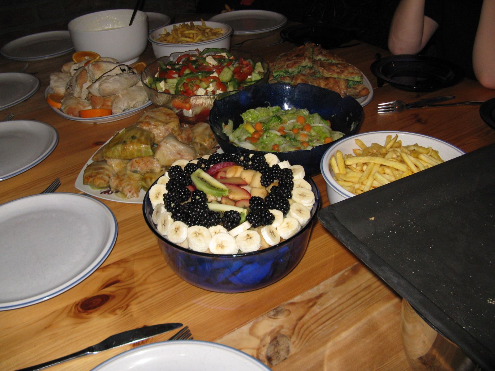 Mit dieser Vielzahl an Gerichten hätte man über 30 Leute satt bekommen, jeder nahm noch Mengen mit nach Hause. Bei uns gab es die ganze Woche danach noch leckeres albanisches Essen. Kommentar meines ältesten Sohnes. „ Mama, Du könntest auch mal so lecker kochen.“
