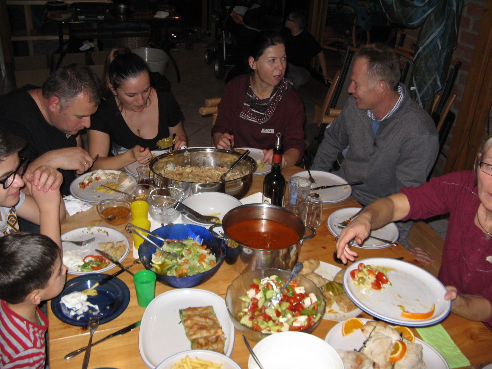 Das Kochteam stellten die Familien Terziu und Zhapaji aus Albanien. Aleko und Erida Terziu hatten ihre Kinder Bruno (10), Brajan (6) und Anasrasia (3 Monate=) mitgebracht. Ilirjan und Mirella Zhapaji waren mit Klodian (14) und Kliti (6) gekommen. Insgesamt bestand unsere lebhafte Gesellschaft aus 6 Erwachsenen und 8 Kindern.