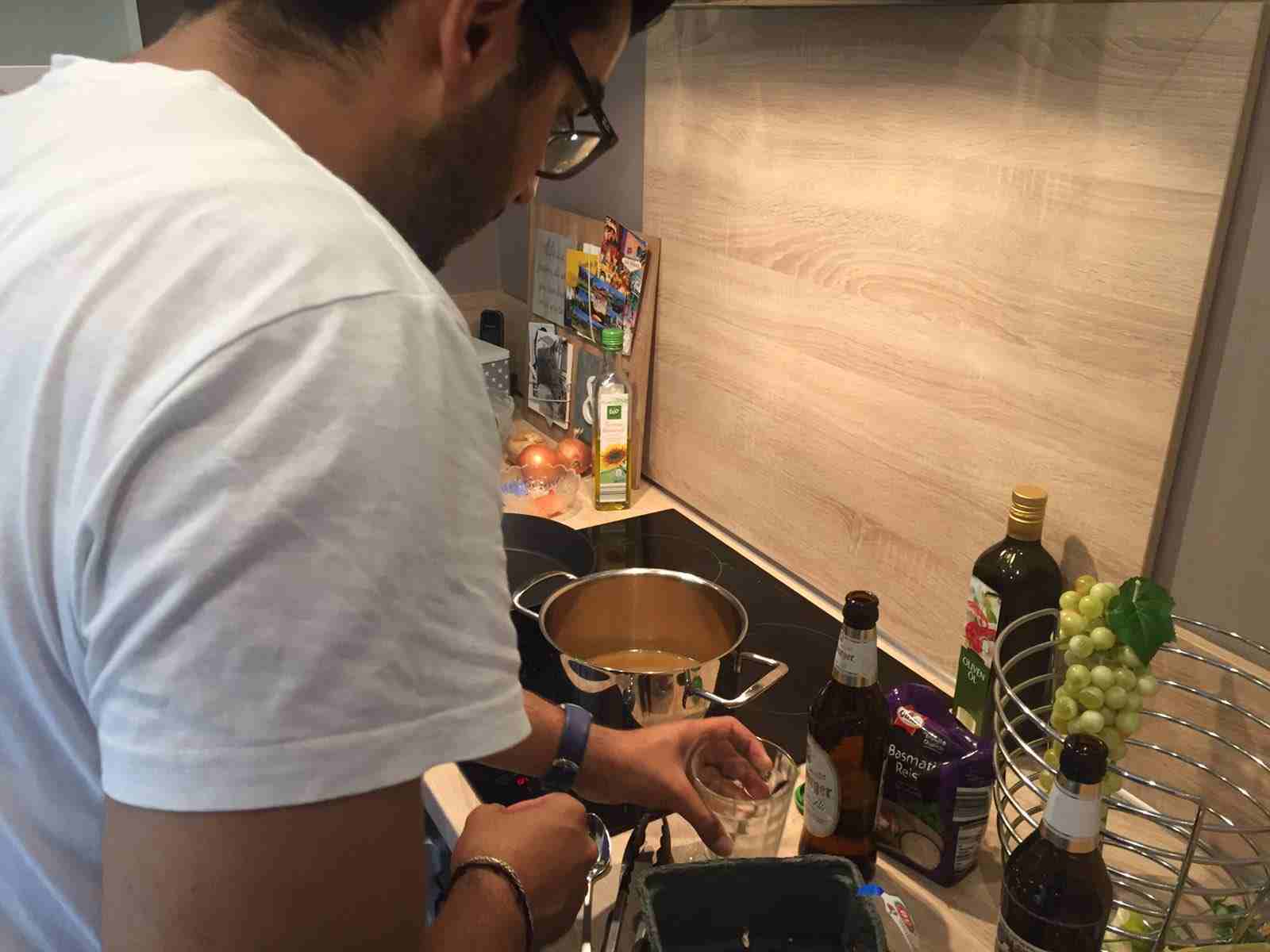 Jeder konnte ein bisschen was zum Kochen beitragen und es fiel leicht, währenddessen in einem wilden Mix aus Deutsch und Englisch ins Gespräch zu kommen. Verstehen können die Drei nämlich nahezu alles auf Deutsch und auch das Sprechen und Schreiben gelingt ihnen beachtlich gut – Hut ab, denn keiner von ihnen hatte bis jetzt die Möglichkeit einen Sprachkurs zu besuchen.