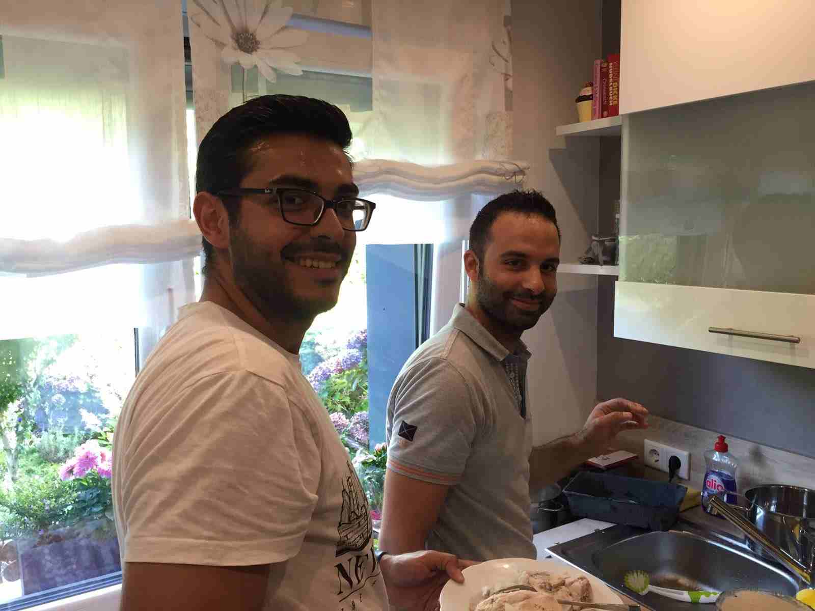 Eine Woche zuvor haben wir bereits Besuch bekommen. Chefkoch Zacharias aus Damaskus, der aktuell in Waldniel wohnt, kam uns besuchen, um erste Kontakte zu knüpfen und kurz zu besprechen was gekocht wird.