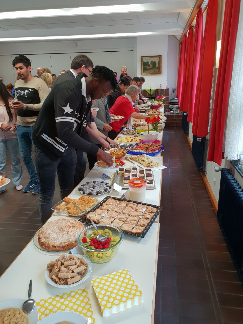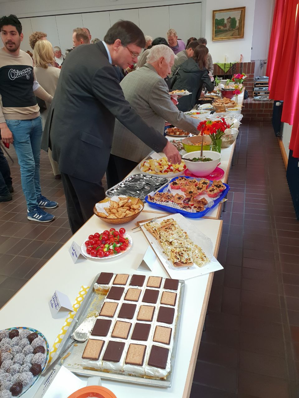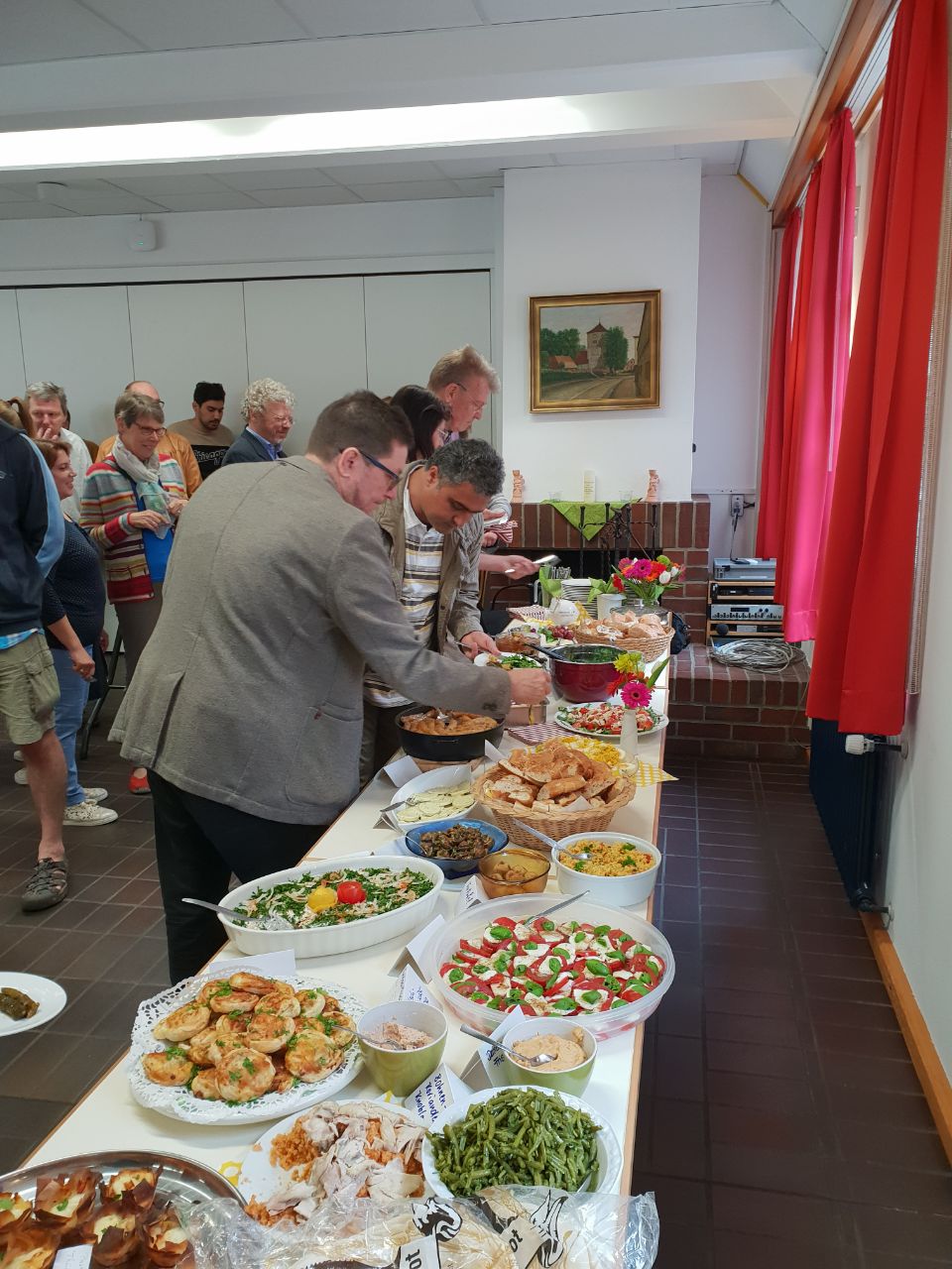 Menschen, Menschen, Menschen kamen. Viele Menschen vieler Nationen. Und alle brachten sie Köstlichkeiten aus ihrer Heimat mit. Ein unglaublich vielseitiges, interessantes und leckeres (!) Buffet entstand.