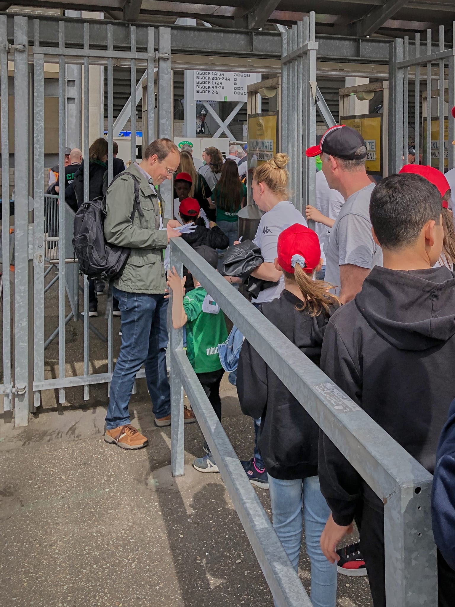 Im Stadion angekommen genossen die Jungs und Mädchen erst einmal genau dies: die Atmosphäre in einem Fußballstadion. Für die meisten war es der allererste Besuch in einem Fußballstadion, um so beeindruckender wirkte die Szenerie. (Auch das gehört zur Strategie: Rotkappen könnten nicht so eine mächtige Geheimwaffe sein, wenn ihr Stadionbesuch Routine wäre.)