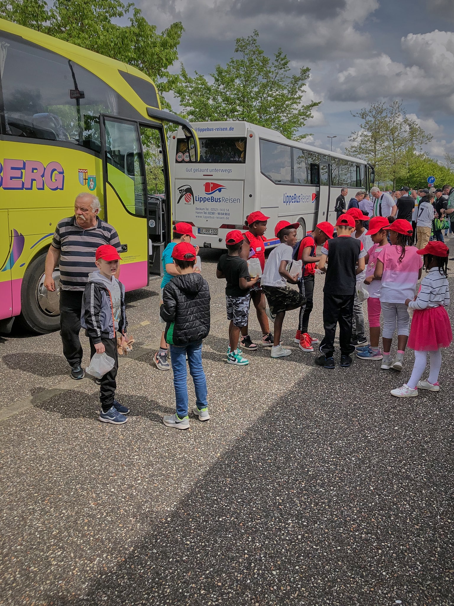 Treffpunkt war am Samstag an der Europaschule. Dort wurden die roten Kappen ausgegeben, alles Organisatorische geklärt und voller Vorfreude auf den Bus gewartet.